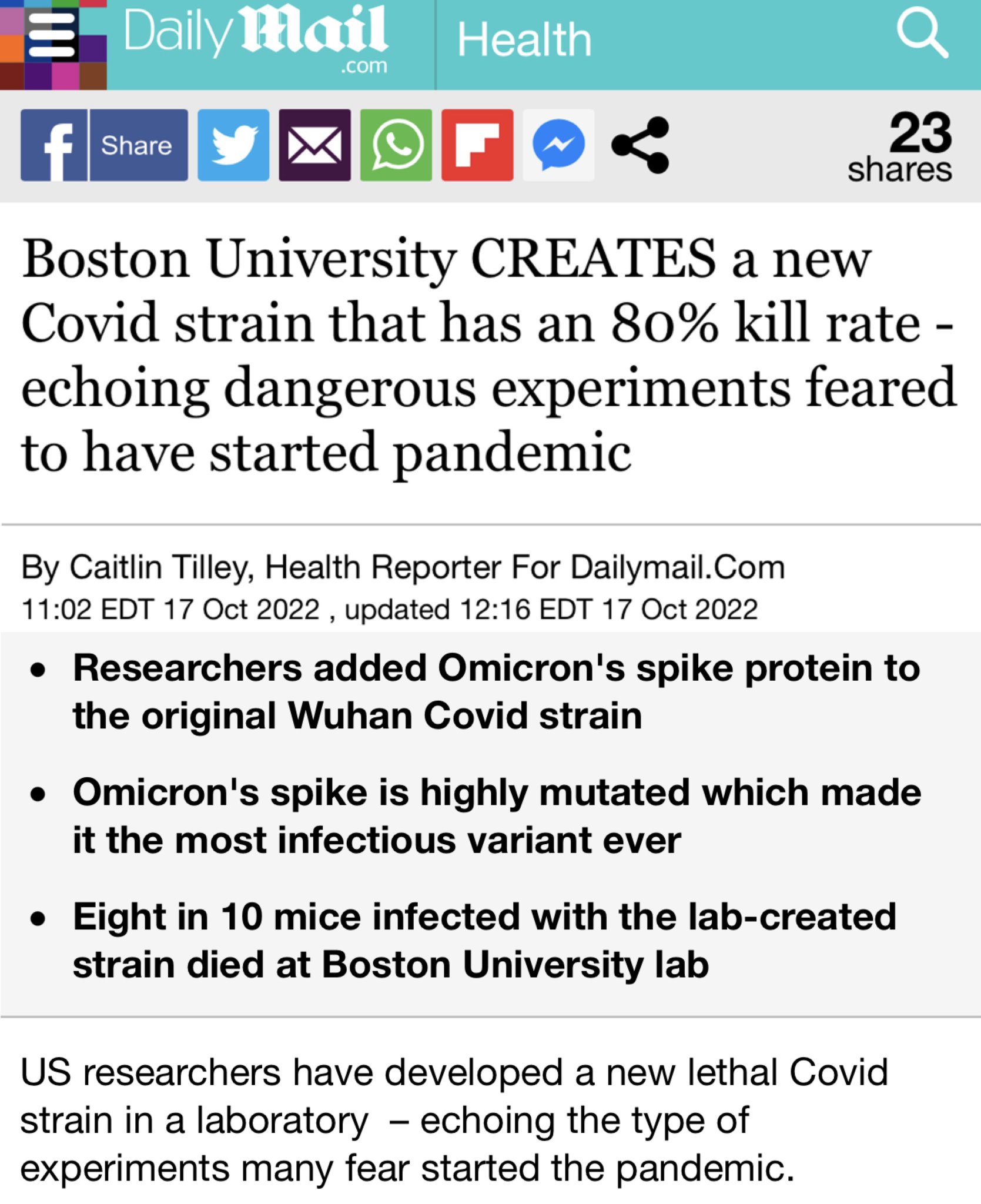 Boston University Defends Controversial Study On Covid Hybrid Strain With 80 Percent Mortality Rate In Mice