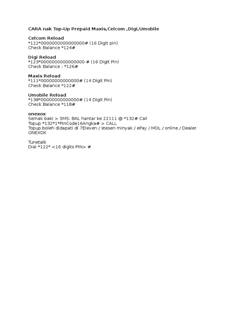 Cara Nak Top Up Prepaid Maxis Celcom Digi Umobile